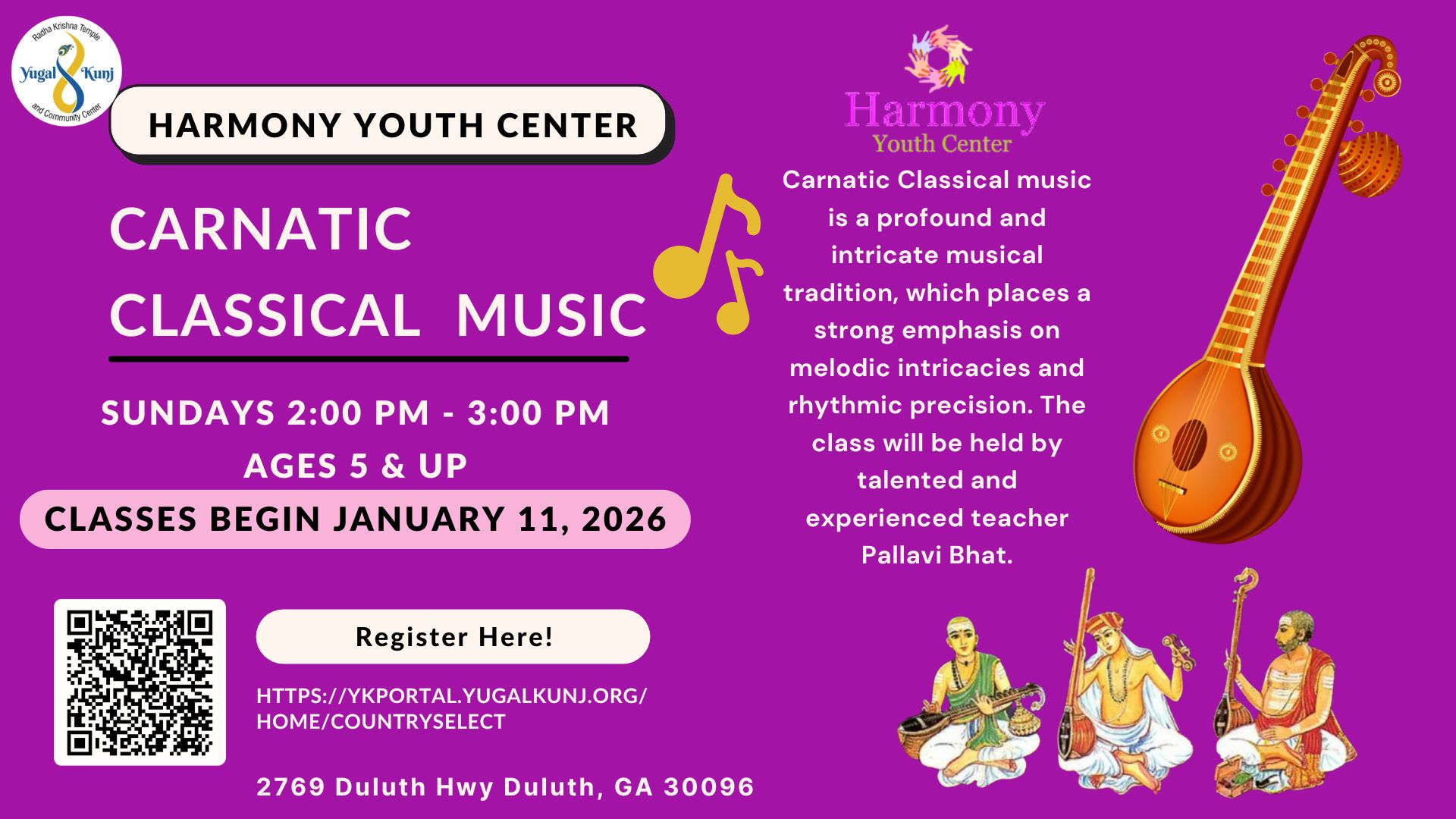 Students will learn the basics of Indian classical vocal music. They will learn how to sing devotional songs and play them on the harmonium. This is an in-person class